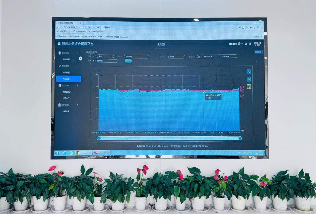 在隨州市水務(wù)集團(tuán)隨縣供水公司的大屏幕上實(shí)時(shí)顯示著各個(gè)區(qū)域的供水壓力、流量等數(shù)據(jù)。值班人員全神貫注地盯著屏幕,密切關(guān)注著供水動態(tài)。他們深知,任何一個(gè)數(shù)據(jù)的異常都可能影響到千家萬戶的用水安全。一旦發(fā)現(xiàn)問題,他們會迅速采取措施,確保供水系統(tǒng)的穩(wěn)定運(yùn)行。