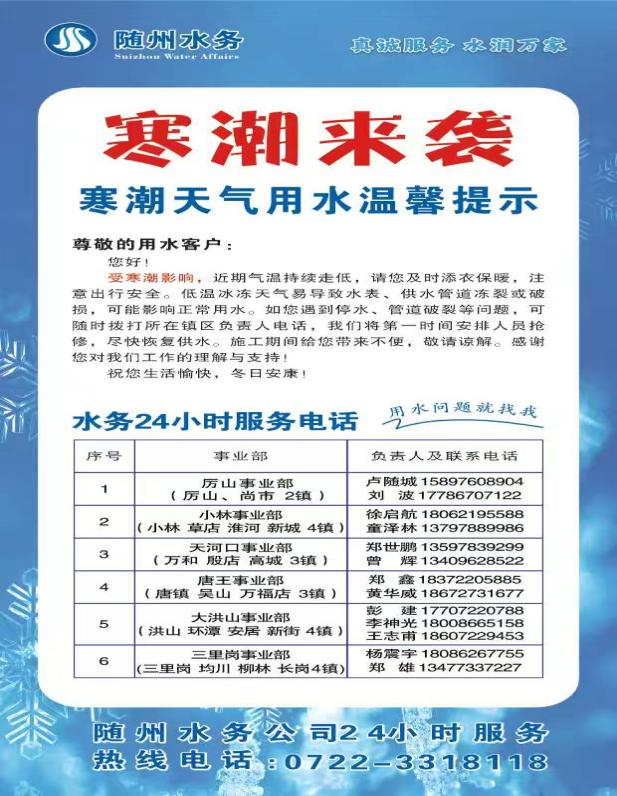 天冷不凍水,隨州水務(wù)守護(hù)你用水無(wú)憂!